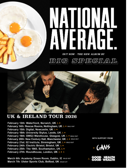 With no signs of slowing down, Big Special share new single ‘SLUGLIFE’ – a gritty burst of energy, capturing Joe Hicklin and Callum Maloney at their most unfiltered. An almost relentless run of new music since their surprise second album NATIONAL AVERAGE., this track stands as a vivid reminder that the duo aren’t easing up for a second – premiered via BBC 6 Music’s Steve Lamacq.